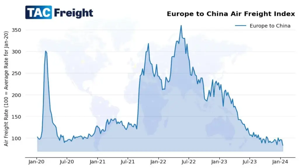 TAC Index is pleased to announce that air freight rates for general cargo from Europe to China are now available on the TAC Index website. This route complements our more granular air cargo market coverage to China, such as Frankfurt to China and Frankfurt to Shanghai.
